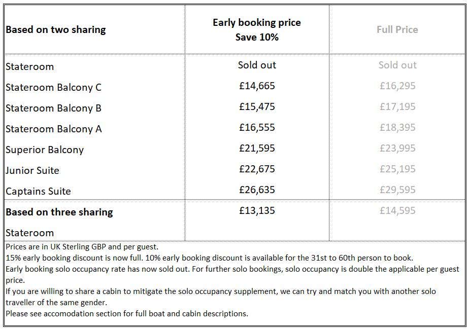 Download the tour information7 August 2026 – 13 days from £13,135 – Save 10% with our early booking discount for the next 30 guests that book (see the price grid, for cabin options and details)