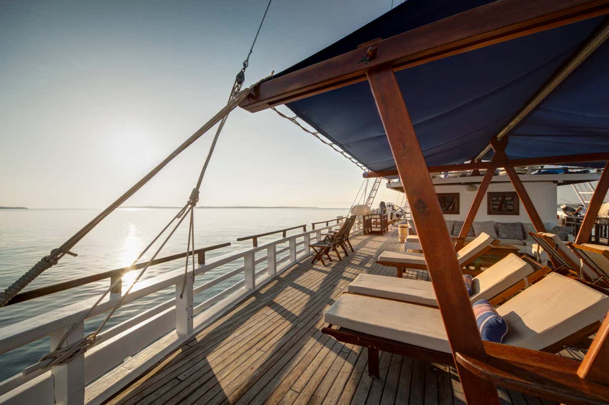 In the morning, you will be transferred to your schooner, the stately Ombak Putih, a traditional Indonesian Pinisi. There will be time for you to get settled into your rooms, have a quick safety briefing, and enjoy an alfresco lunch while meeting the crew and the other accompanying cruise directors.